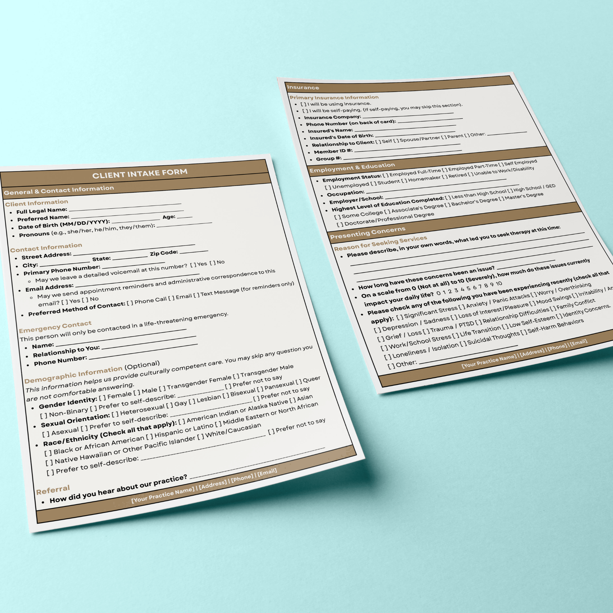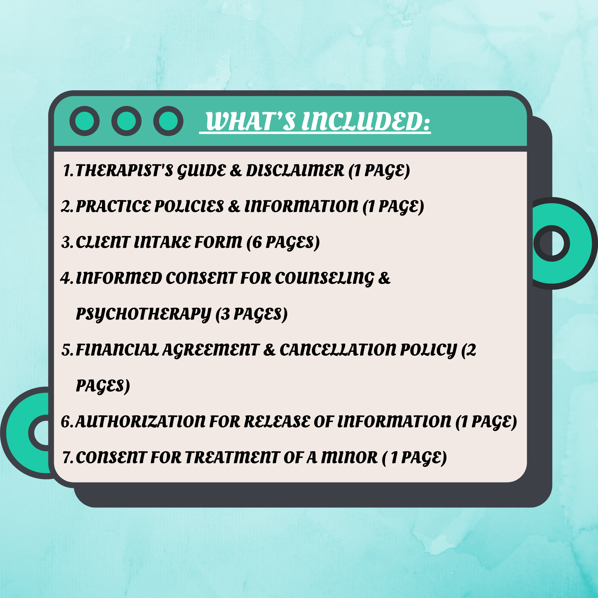 * Any mental health professional needing a complete client onboarding paperwork bundle.