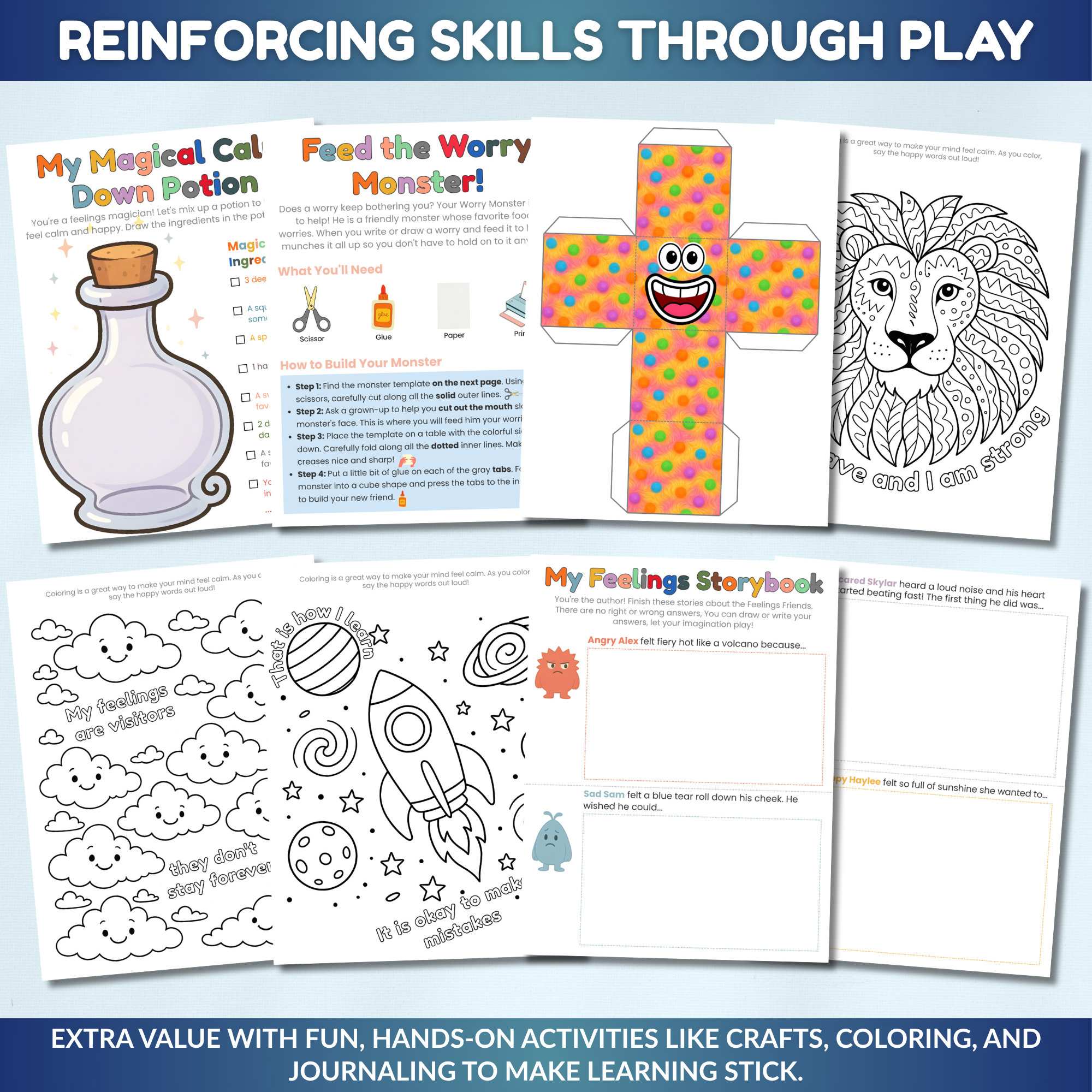 Introducing the Kids’ Calm Down Toolkit, a harmonious blend of tools designed to nurture emotional regulation and soothe anxious hearts. Imagine the tranquility of a personal sanctuary, now available in a neatly packaged calm down corner kit. The gentle guidance of breathing exercises intertwines seamlessly with the vibrant visuals of the feelings chart, creating a symphony of support for children navigating emotional waves. This enchanting set is perfect for both the homeschool toddler and kindergarten prek child, providing mindfulness for kids through enchanting stories in the Kid Therapy Workbook. Each component, from calming breathing techniques to innovative behavior management strategies, ensures children have access to effective coping skills for anxiety. Specifically curated as children ADHD tools, the toolkit empowers self-regulation, transforming uncertainty into serenity.